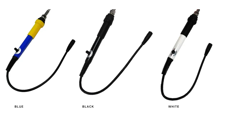 This electric soldering iron is an essential tool for electronics engineers. It's mini and lightweight in design; and the operating handle and tip are easy and convenient for use. Users can adjust the temperature from 200-400°C freely by rotating the knob.